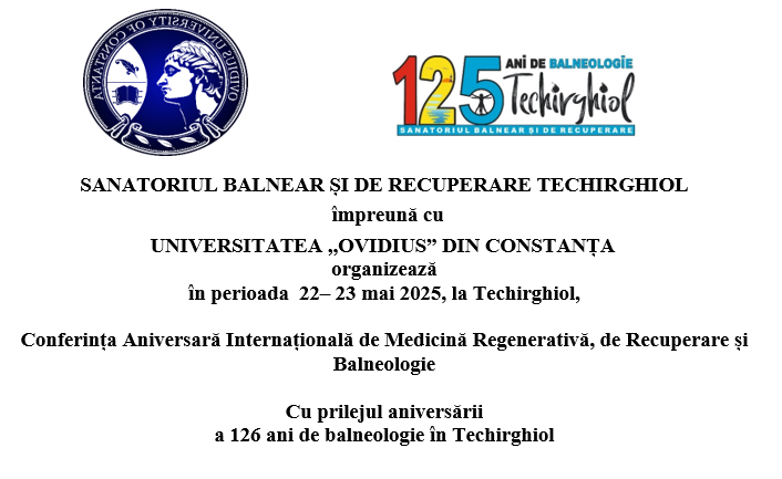 During the ANNIVERSARY CONFERENCE of 126 years of balneology at Techirghiol, the teaching staff of the MFR discipline at the Faculty of Medicine of the “Ovidius” University of Constanța will organize, with the support of the company Ortoplus Pharma, a Practical Course of intra-articular infiltrations (PRP, hyaluronic acid, collagen), credited with 12 EMC points, to provide training support to young colleagues and beyond.